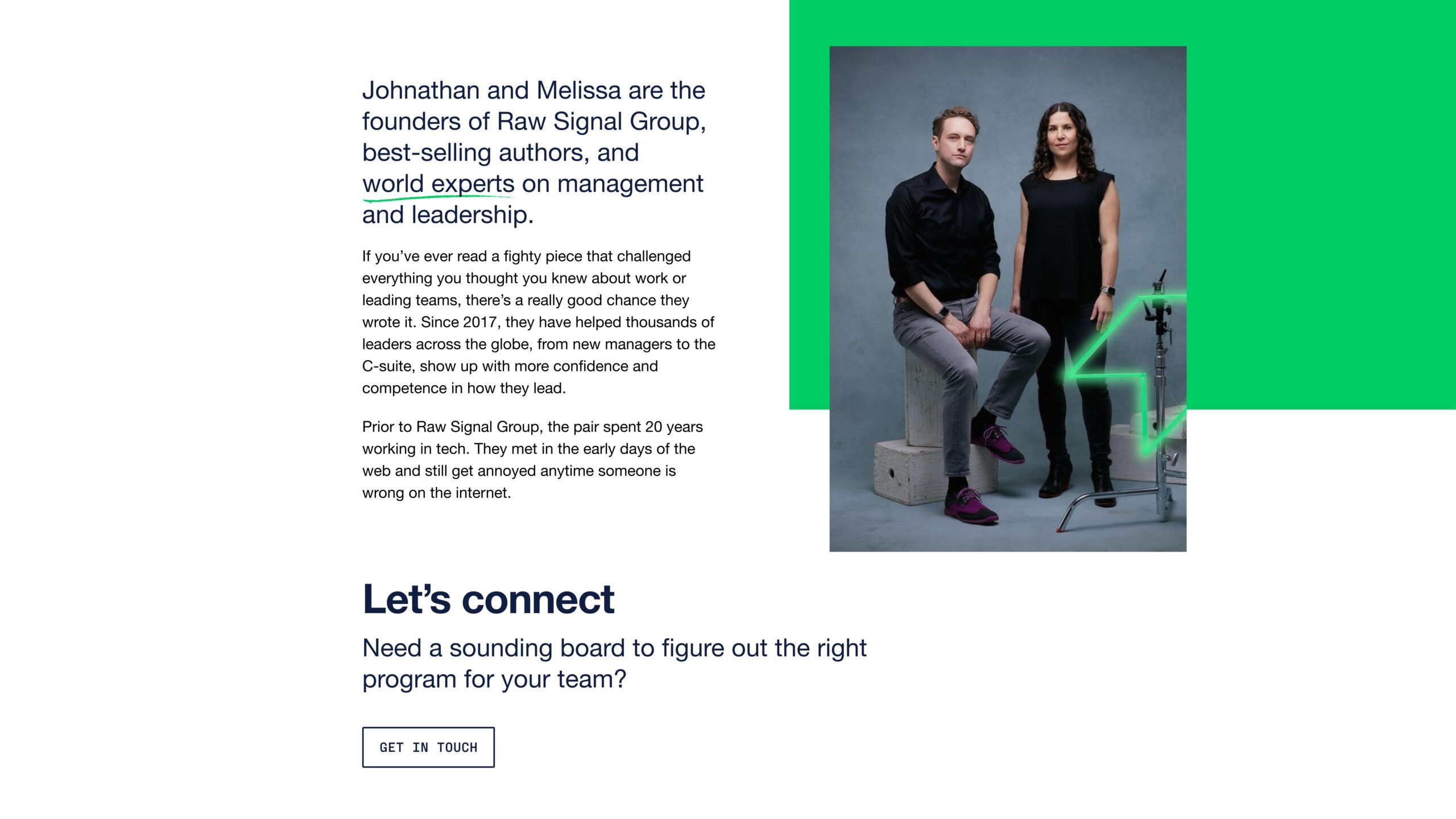 Together, the Nightingales head up Raw Signal Group (throw a bit of a Quebecois accent at it and you’ll get the joke) which delivers the best management and leadership training available online and in person for some of the most well known names in tech, creativity, and social good. Working with all levels of management, they deliver career-changing training that’s backed by decades of experience as people leaders themselves.