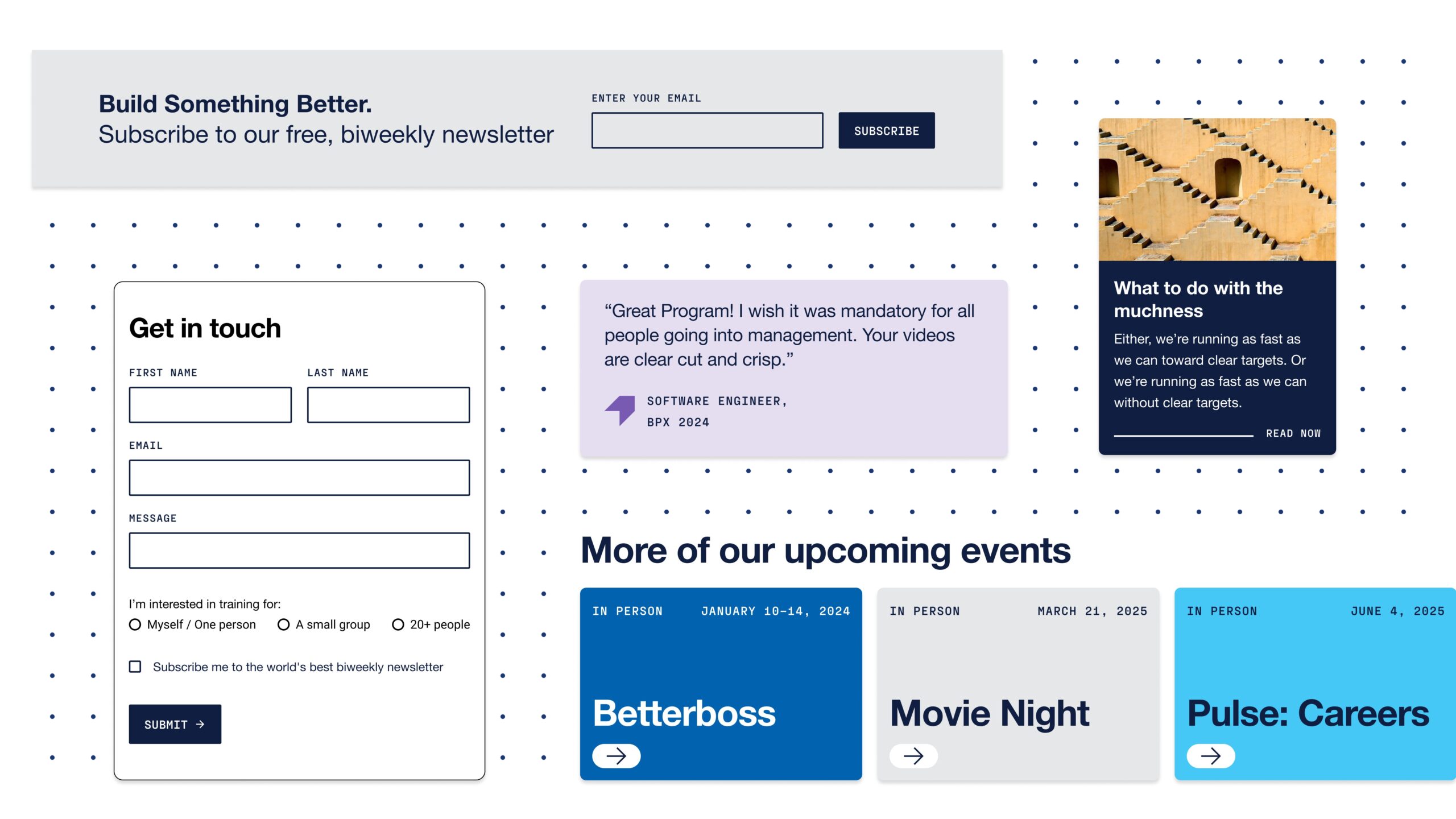 The result is a platform that acts as a dialogue between the Nightingales and their community, representing their unique perspective and tone of voice, and creating clear pathways for engagement. The new platform acts as a hub, connecting relationships playing out via email, Slack, and in-person with programming that elevates team outcomes and takes careers to the next level.