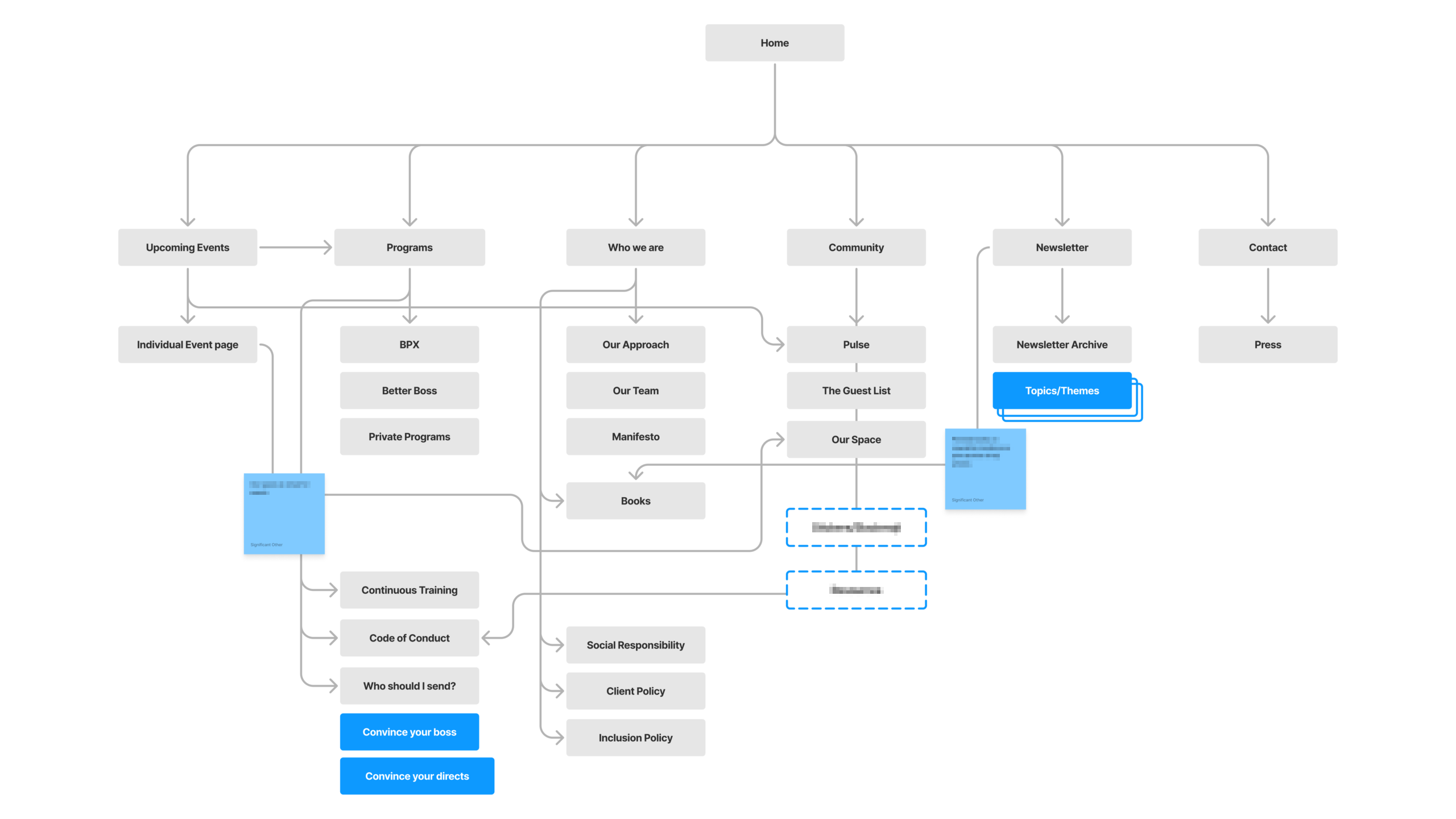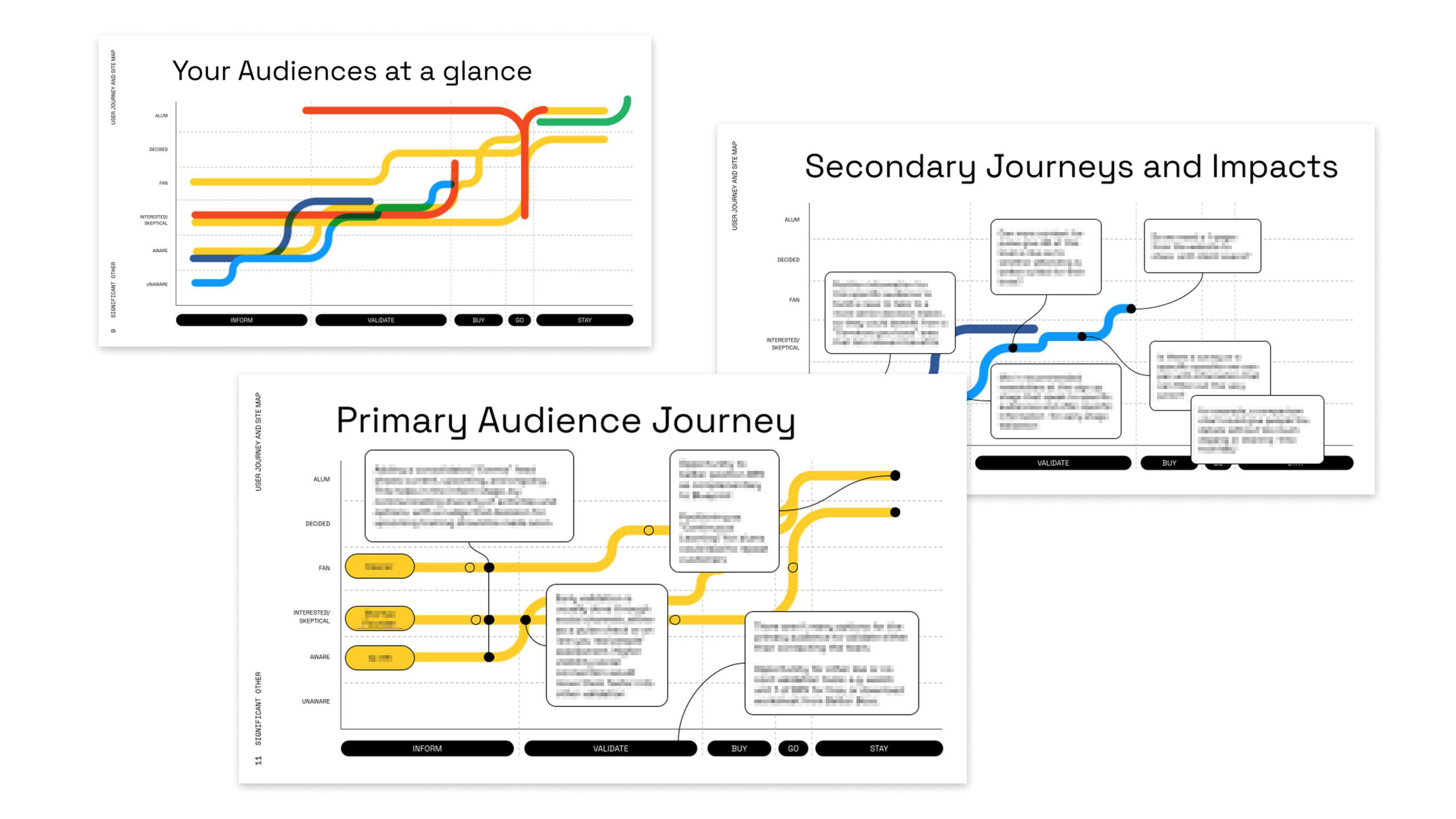 As part of every new engagement we ask clients to fill out a Knowledge and Process survey. This survey prompts clients to think about what they know (and what they don’t know) about their community and their ecosystem, and it helps us get a better understanding of how they like to work (with answers ranging from “please deliver annotated hard copies for review and markup” to “throw me into the deepest depths of your FigJam files”). RSG’s survey told us we had a rare opportunity to crack our process wide open and go deep with them.